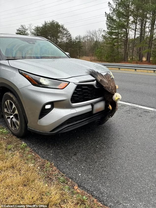 In a startling encounter on a Florida highway, a driver was shocked to discover that a bald eagle, America’s iconic bird of prey, had become trapped in the grille of his car. The bizarre incident quickly went viral after the Clay County Sheriff’s Office shared images of the unexpected rescue on Facebook, garnering over 10,000 reactions.